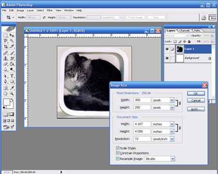 Step 2: Create the small, thumbnail version of the image, by resizing it in Photoshop. Go to Image > Image Size. Make sure that "Constrain Proportions" is checked, so that the width and height remain the same proportions (otherwise the image will be distorted). Then, simply type in a new Pixel Dimension width. I usually use between 75–150 pixels for my thumbnail widths.