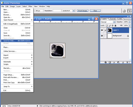 Step 1: Open your image in Photoshop. Save the large version of the image. Make sure you "save for web."