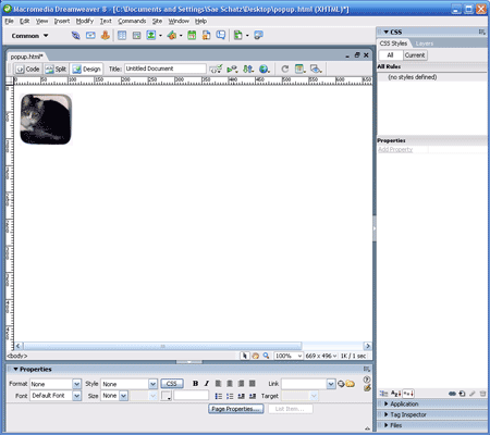 Step 9: Yeah! Our JavaScript function is finished. Now, we just need to call it in the HTML body. Go back to the DESIGN view in DreamWeaver. Insert your thumbnail image.