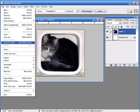Step 1: Open your image in Photoshop. Save the large version of the image. Make sure you "save for web."